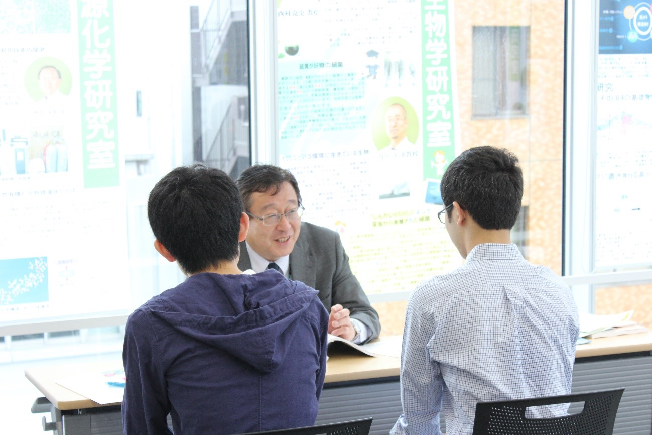 学科のこと、大学生活、勉強、進路・就職、教職・学芸員課程、取得資格、奨学金、下宿先、カリキュラム、研究など、何でもお話をお伺いします。また、実際に講義で使用する教室や学生実験室、研究室や研究に関係する分析機器なども紹介します。